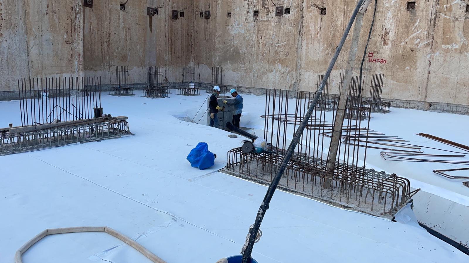 האיטום מתבצע במשך כל בניית השלד, מראשי הכלונס, חדרים רטובים, מרפסות, גגות וכיוצא בזה.