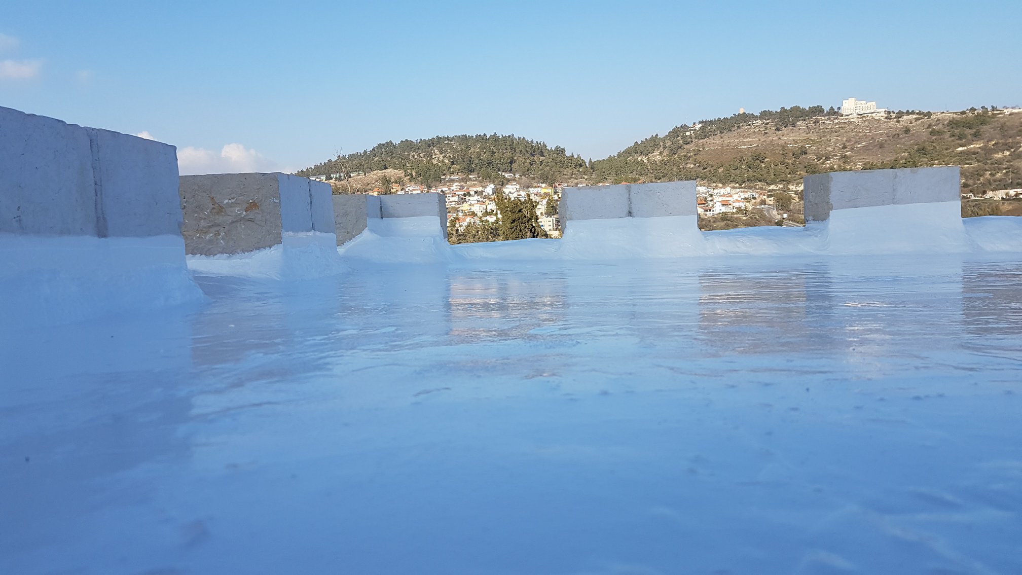 לאחר איטום גג ביריעות ביטומניות או בזפת חמה, מומלץ לצפות בחומר אקרילי ייעודי. ההלבנה מחזירה אור וחום (Reflective Coating) מפחיתה בלאי מקרינת UV ותורמת לבידוד תרמי משופר.